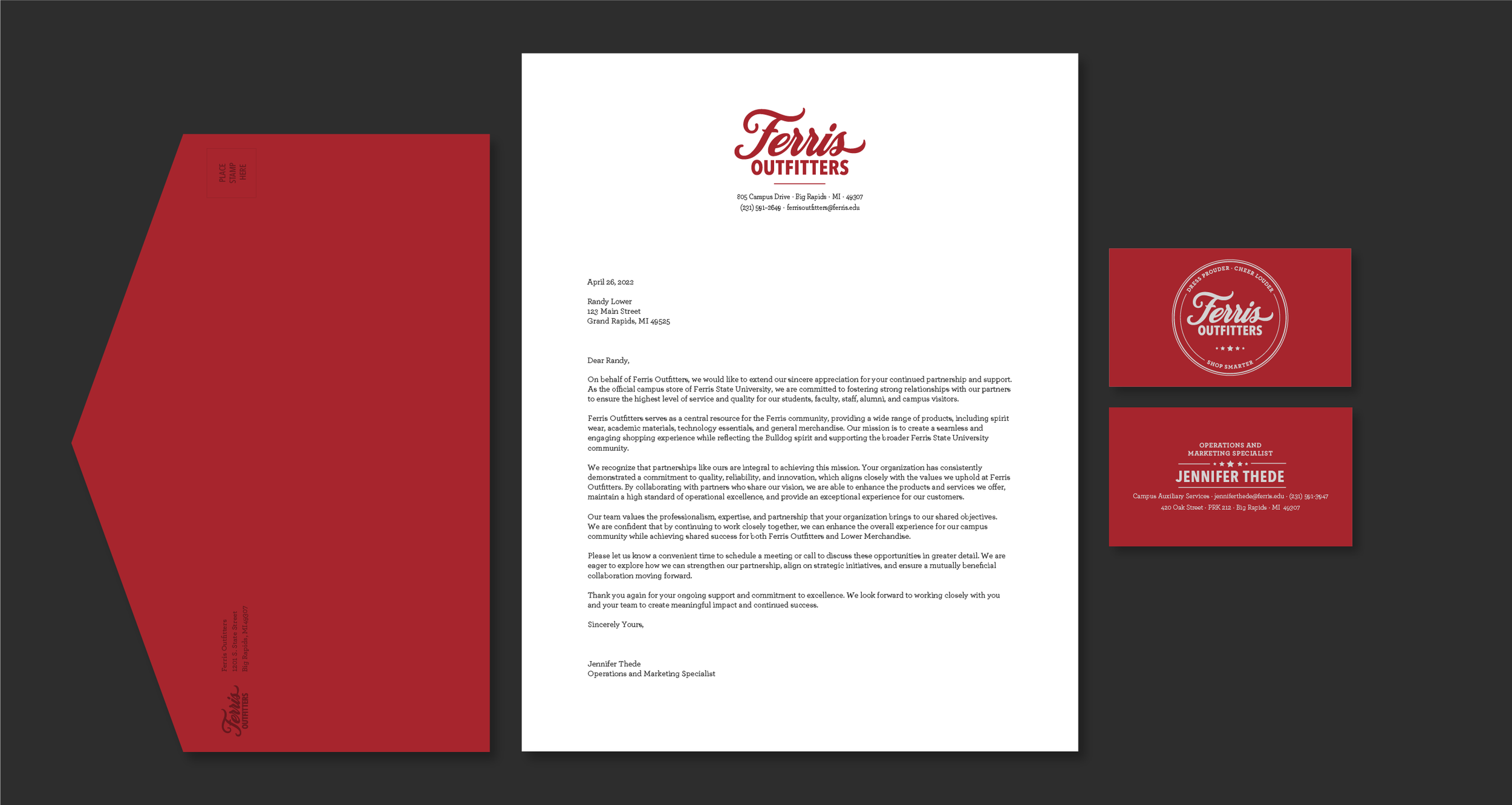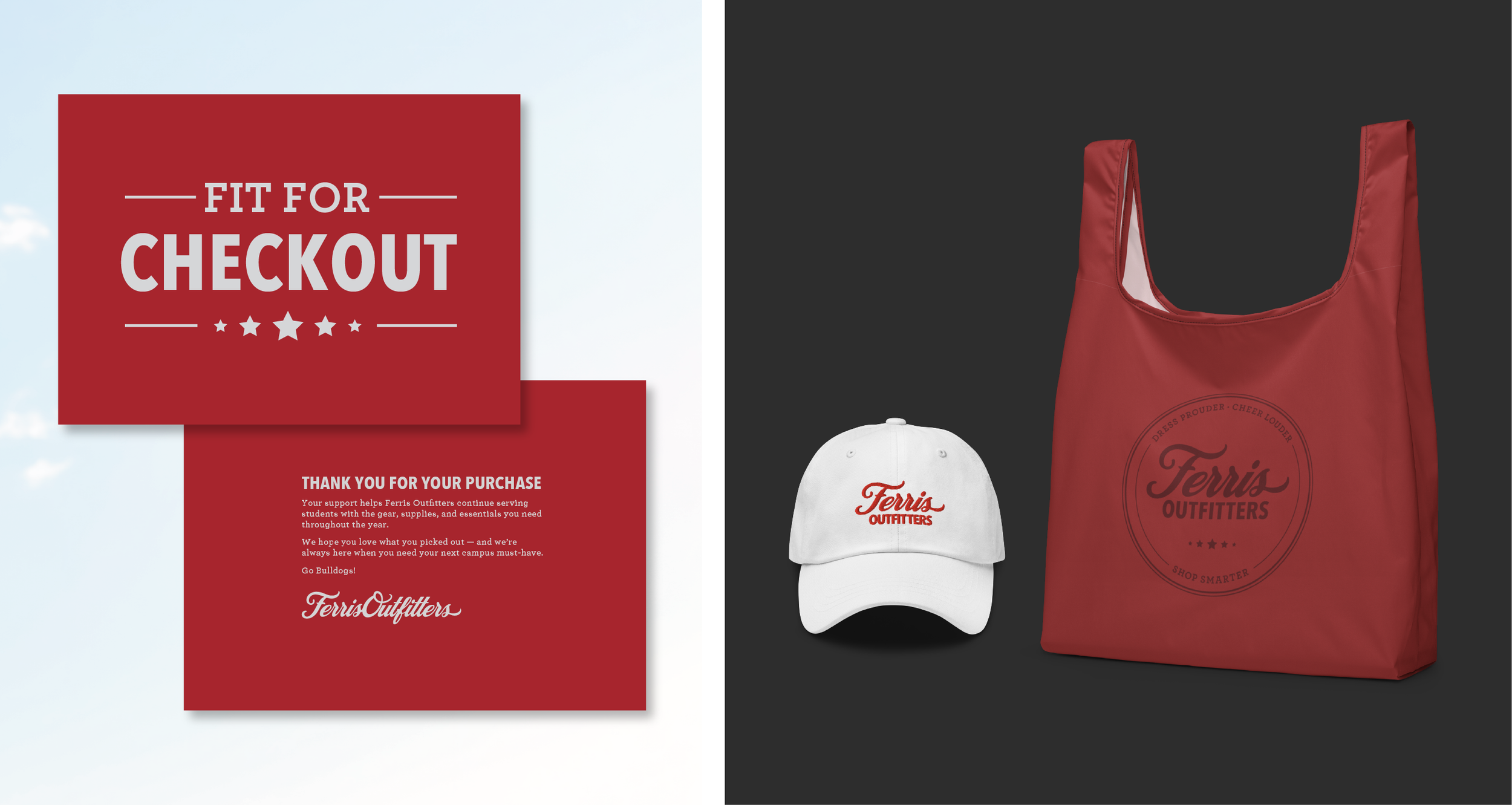 I initiated the design direction for “Vintage Refresh,” a concept that celebrates Ferris’ rich history while reintroducing Ferris Outfitters as the heart of Ferris—a welcoming place where anyone can come to get the products and services they need.