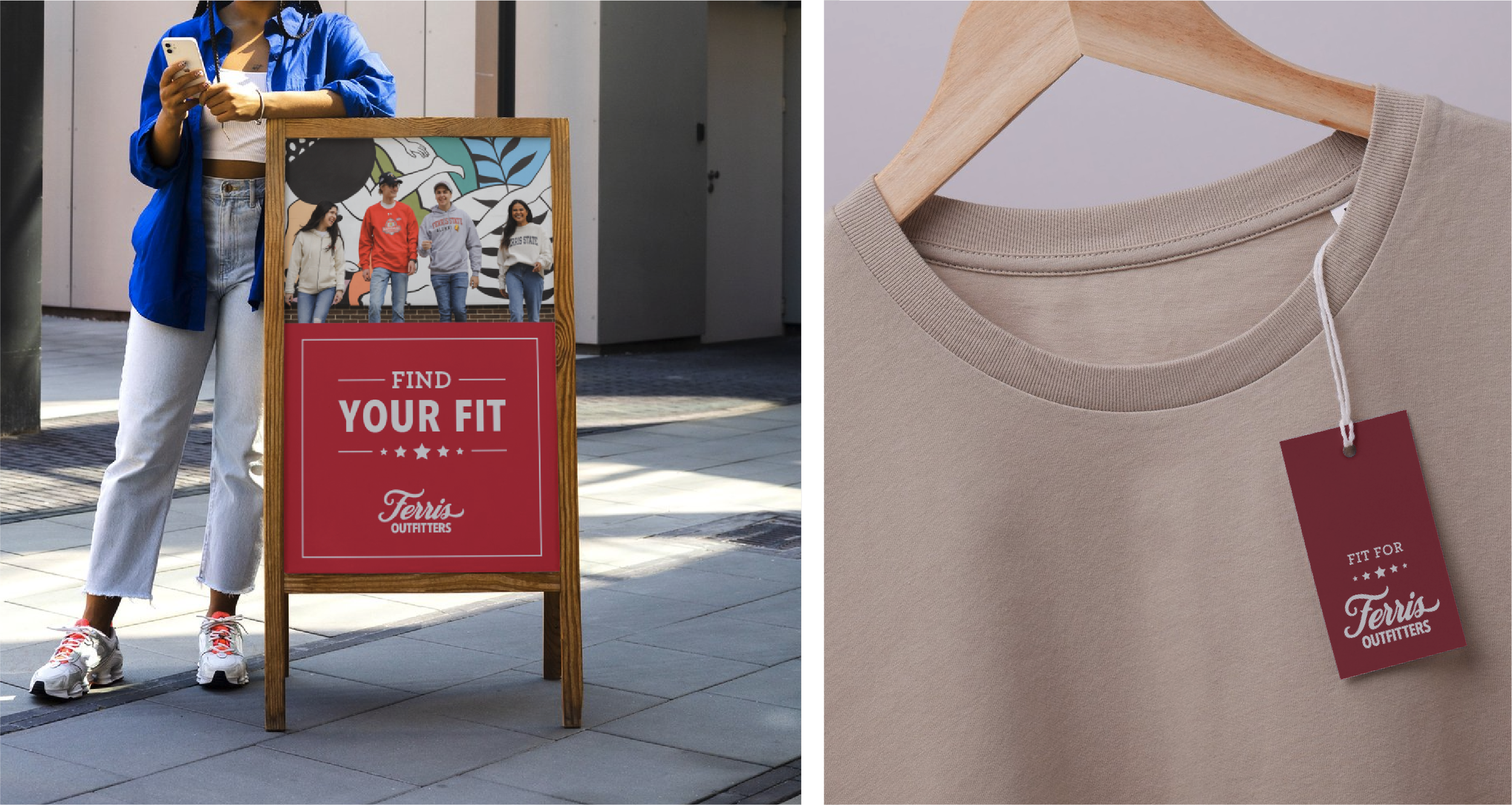 The storefront features a prominent acrylic sign designed to highlight the personality of the brand and invite students into Ferris Outfitters.
