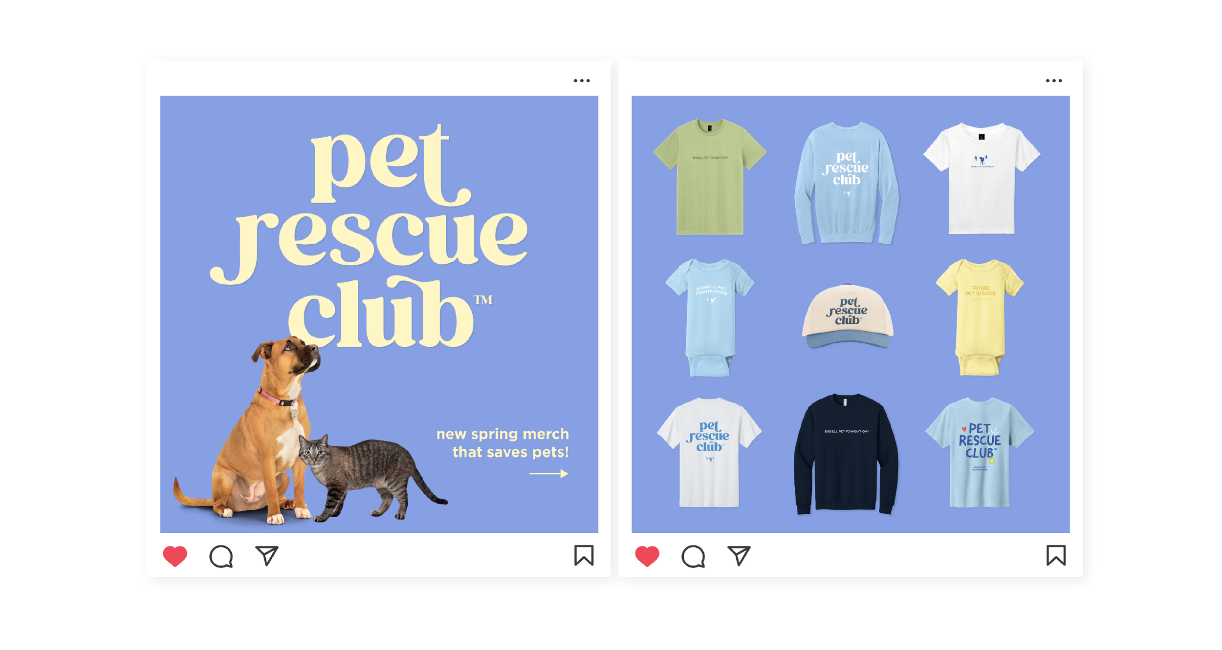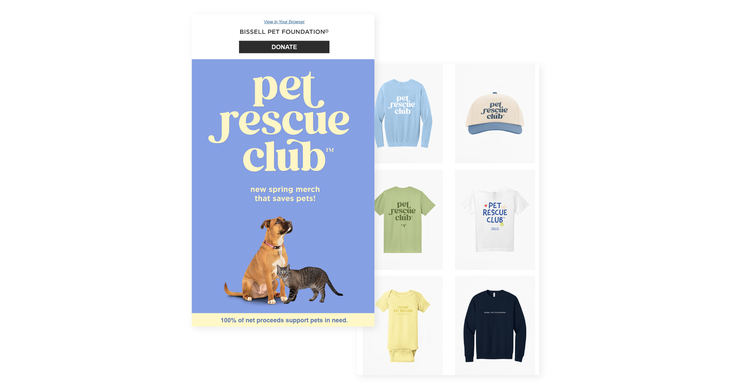 Designed a spring merchandise collection for BISSELL Pet Foundation's Pet Rescue Club™, adapting the brand across adult and children's apparel. Created supporting email and social graphics to promote the collection across digital channels, maintaining a consistent look and feel across every touchpoint.