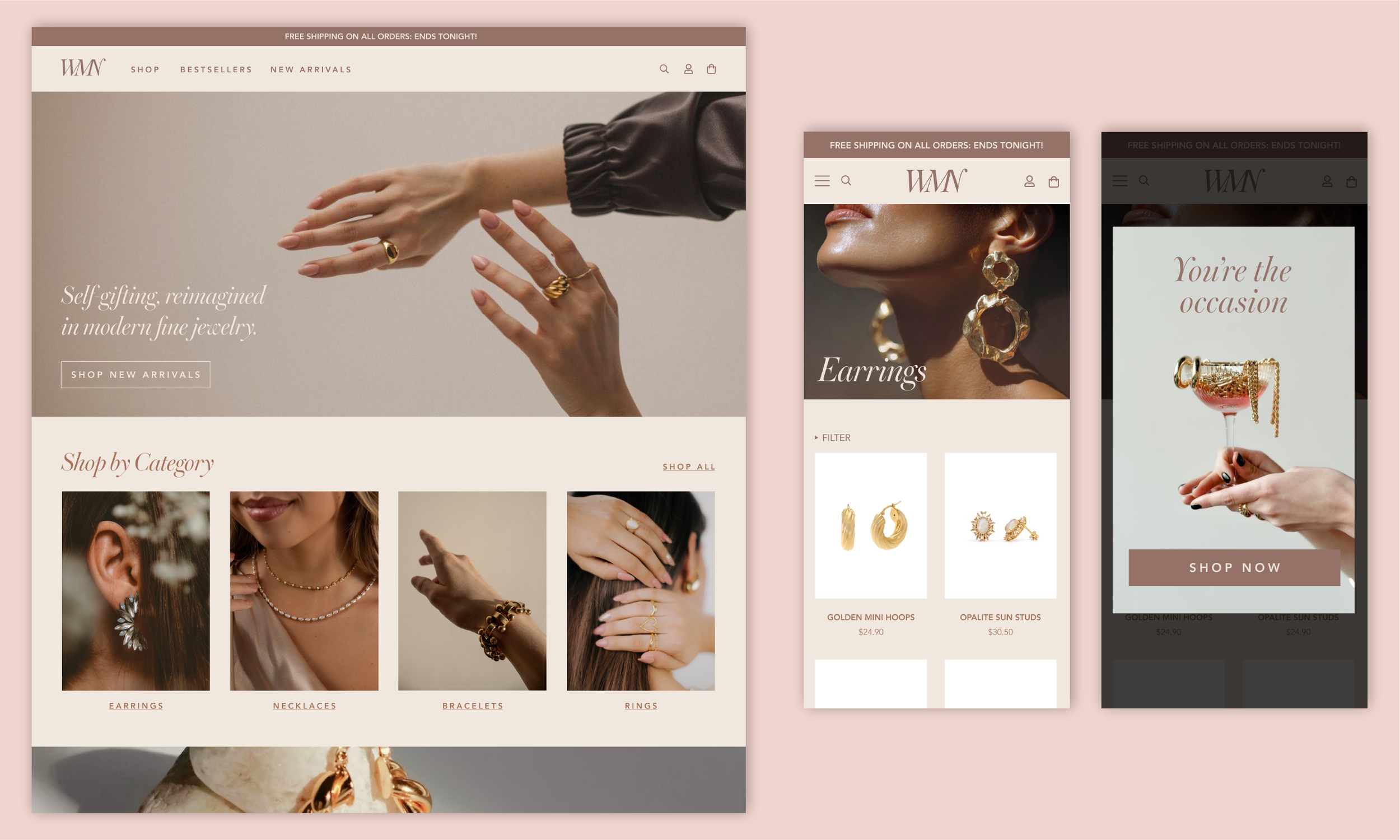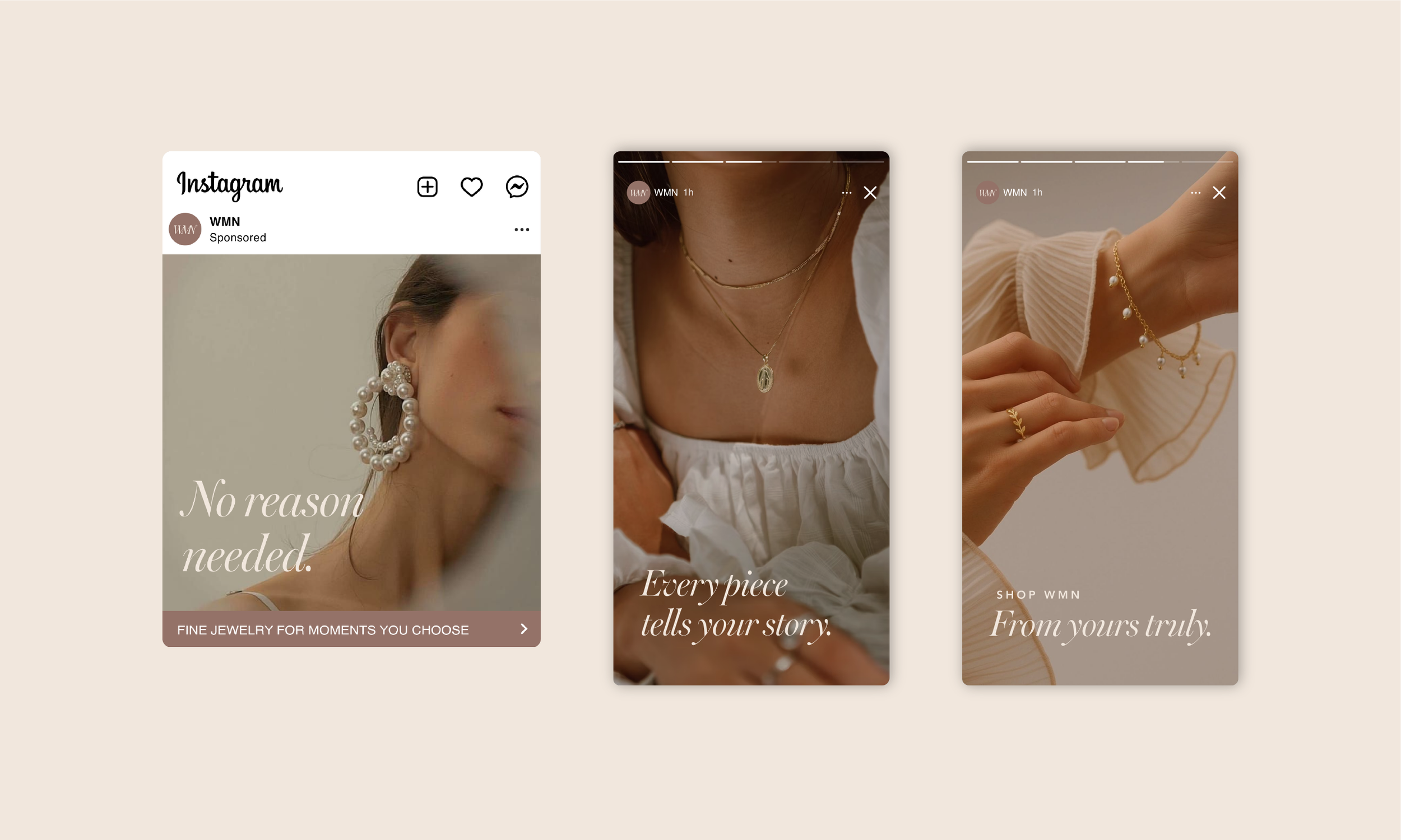 WMN was designed to appeal to women who invest in elevated everyday pieces and value timeless, wearable jewelry. Its positioning emphasizes empowerment through ownership: you don’t need an occasion—you are the occasion.